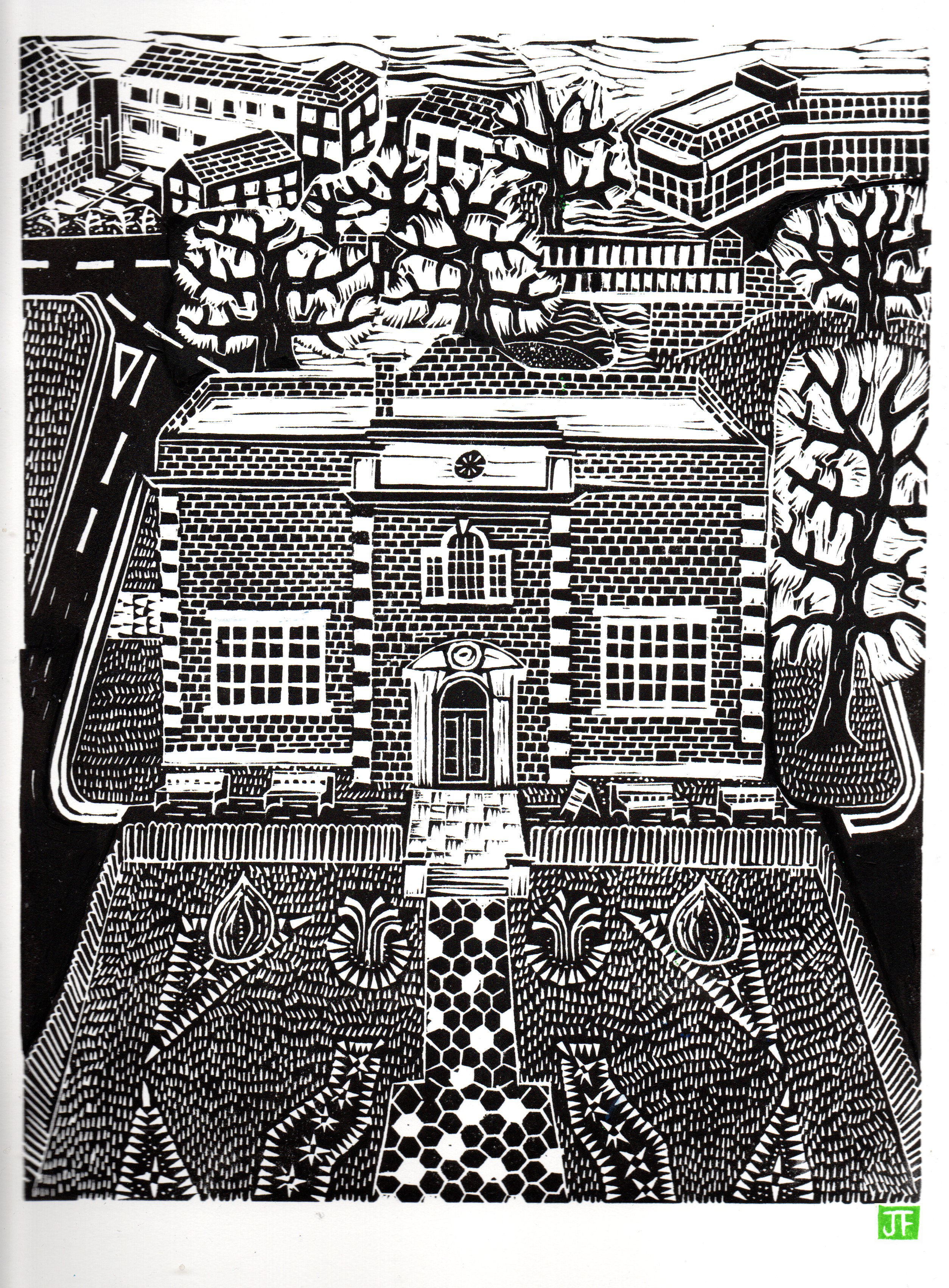 View Over Nuneaton Museum & Art Gallery Linocut print by John Freeman Printed on Hereford 145gsm paper with Cranfield ink. 14 x 11 inches |